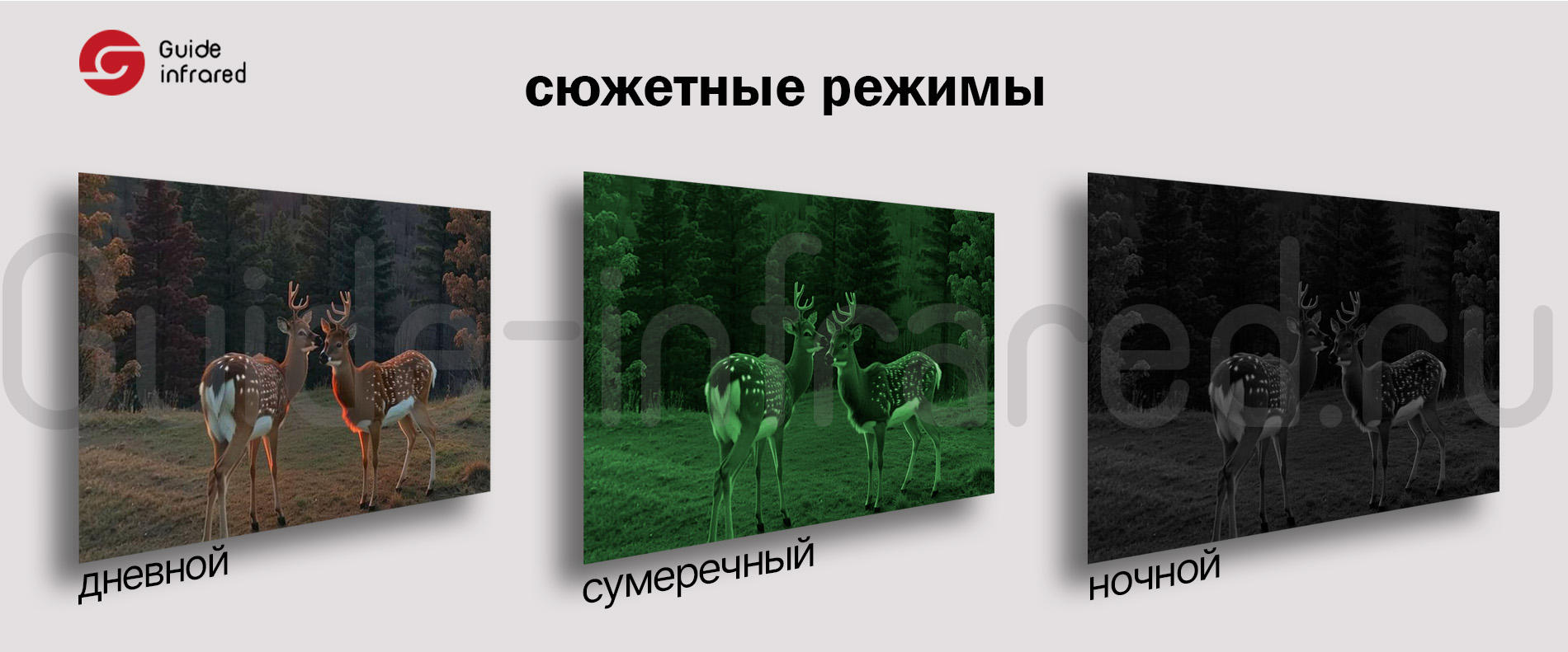 Устройство предлагает три различных рабочих режима, каждый из которых можно тонко настроить под конкретные условия наблюдения. В распоряжении пользователя 10 градаций яркости и 10 уровней контрастности для каждого из режимов, что позволяет добиться максимально комфортной и информативной картинки в зависимости от освещённости, погодных условий и особенностей объекта наблюдения. Все произведённые настройки автоматически сохраняются в памяти прибора, избавляя от необходимости повторной регулировки параметров при следующем включении устройства. Такой подход обеспечивает быструю адаптацию к меняющимся условиям и позволяет мгновенно переключаться между предустановленными профилями настроек.